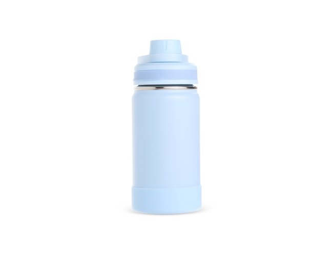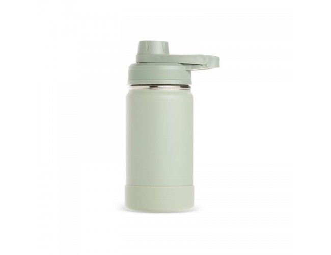 Garrafa térmica em inox, pintura eletrostática e capacidade para até 350ml. Conta com estrutura de parede dupla e vedação a vácuo, permitindo conservar a temperatura de líquidos por mais tempo. Possui tampa rosqueável com protetor para o bocal e alça fixa para facilitar o transporte. Acompanha protetor para a base em silicone.